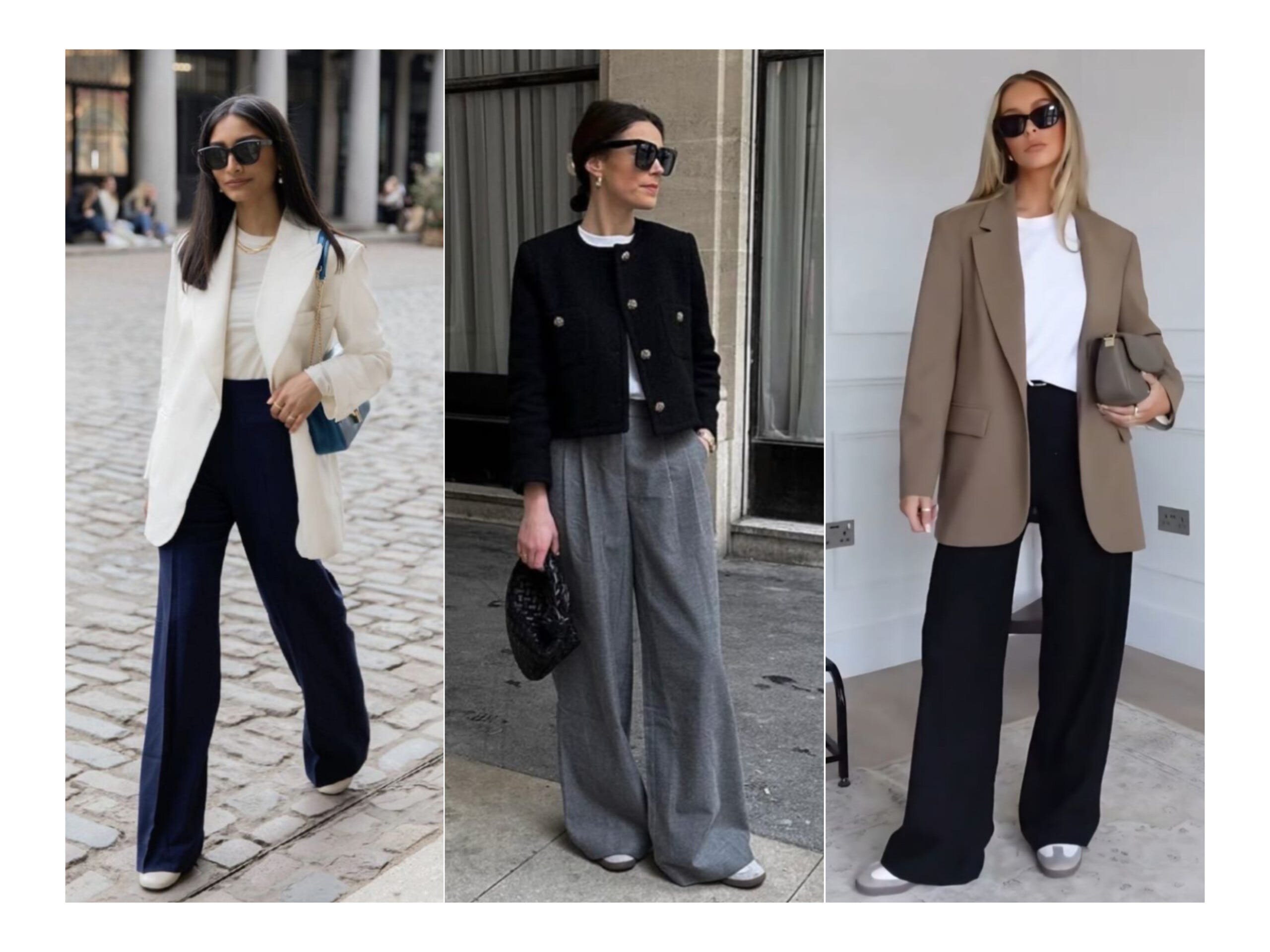 Un tricou alb + pantaloni drepți + un blazer structurat e o formulă foarte simplă, dar care arată modern și actual.