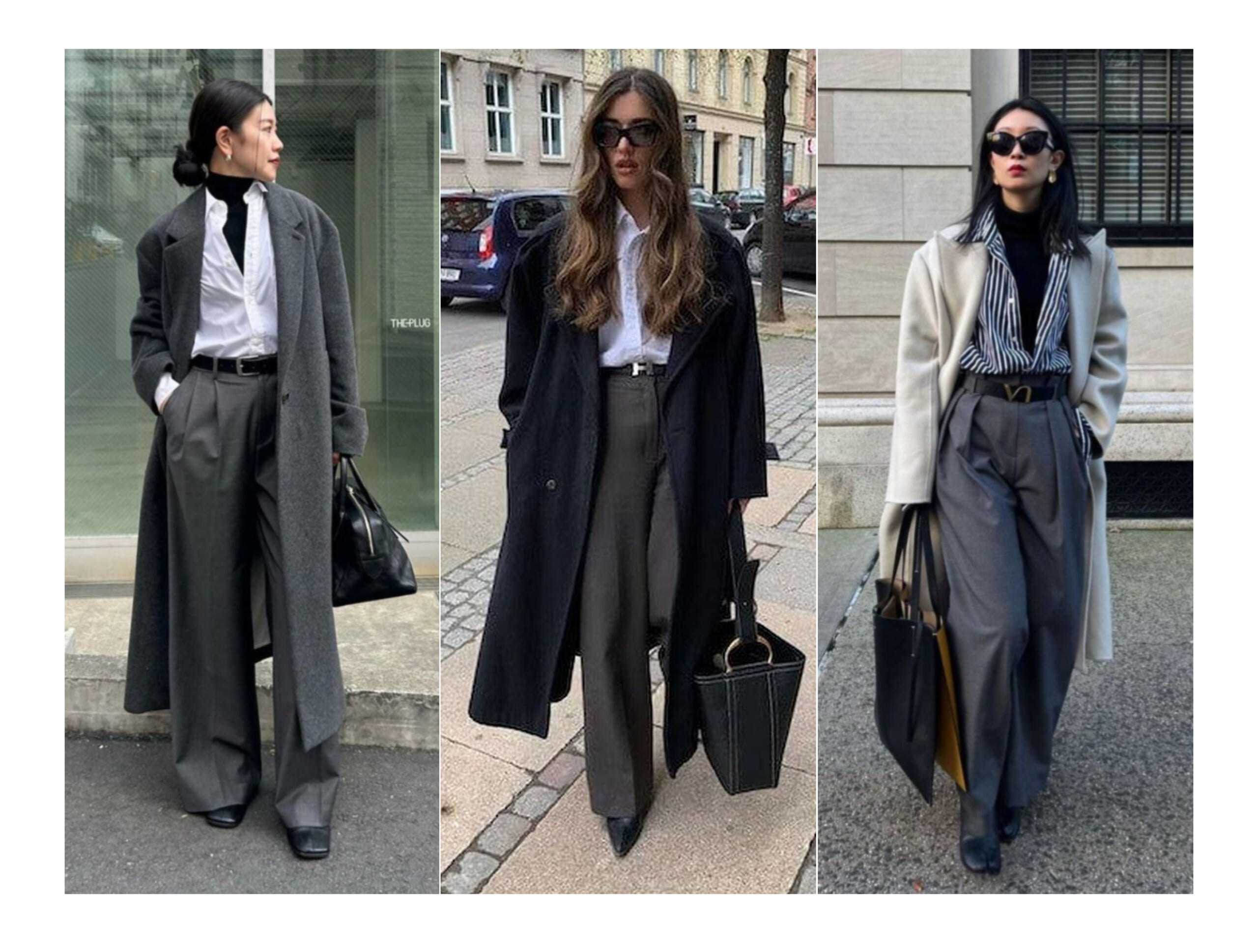 O cămașă simplă sau cu dungi + pantaloni largi cu talie înaltă + un palton din lână îți vor da un aer relaxat, dar sofisticat. Dacă vremea e extrem de rece, poți adăuga o maletă sub cămașă, fără să sacrifici aspectul.